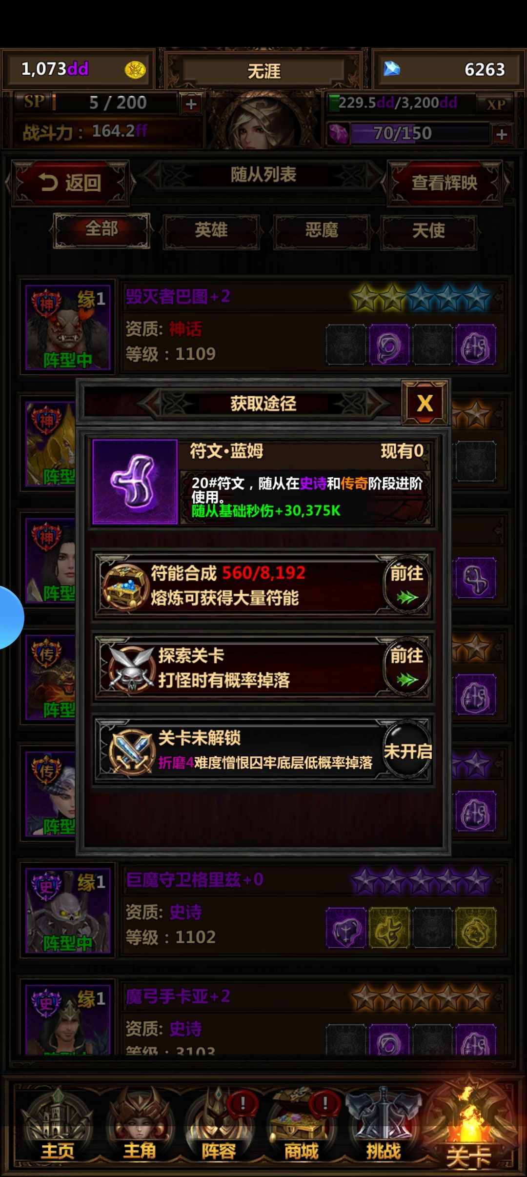 前期推图阶段,需要优先升星一个主随从,在主随从升星一级需要的资源,高于其他随从升5星的时候,优先提升一级星标等级。