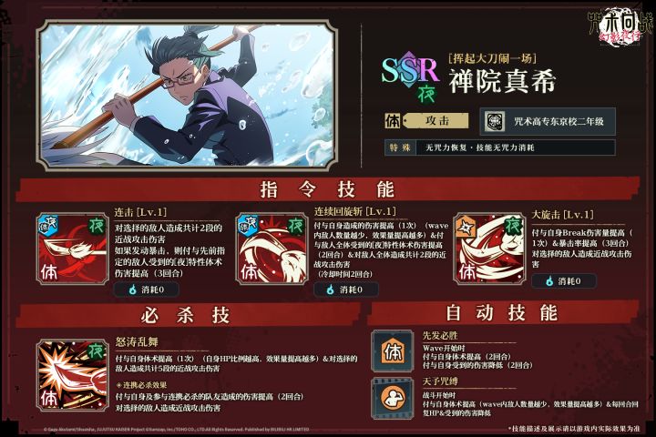 SSR角色[挥起大刀闹一场]禅院真希 技能详解