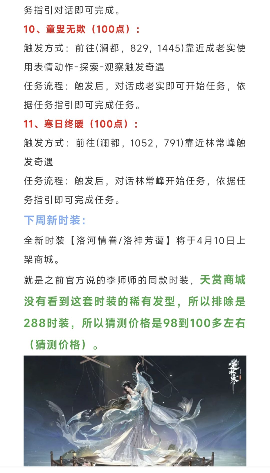 逆水寒下周四98块新时装,李师师同款时装,1200点季藏!