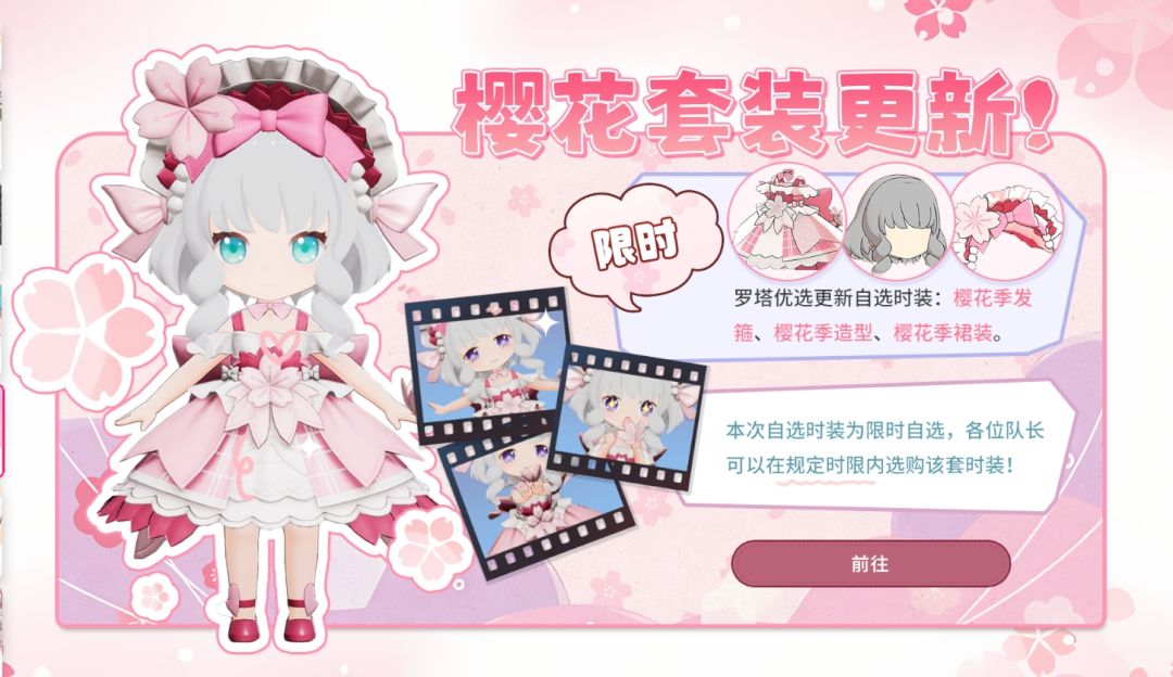 在外观池中限时新增,樱花季裙装、帽子和头发三件套,有喜欢的小伙伴记得及时抽取。