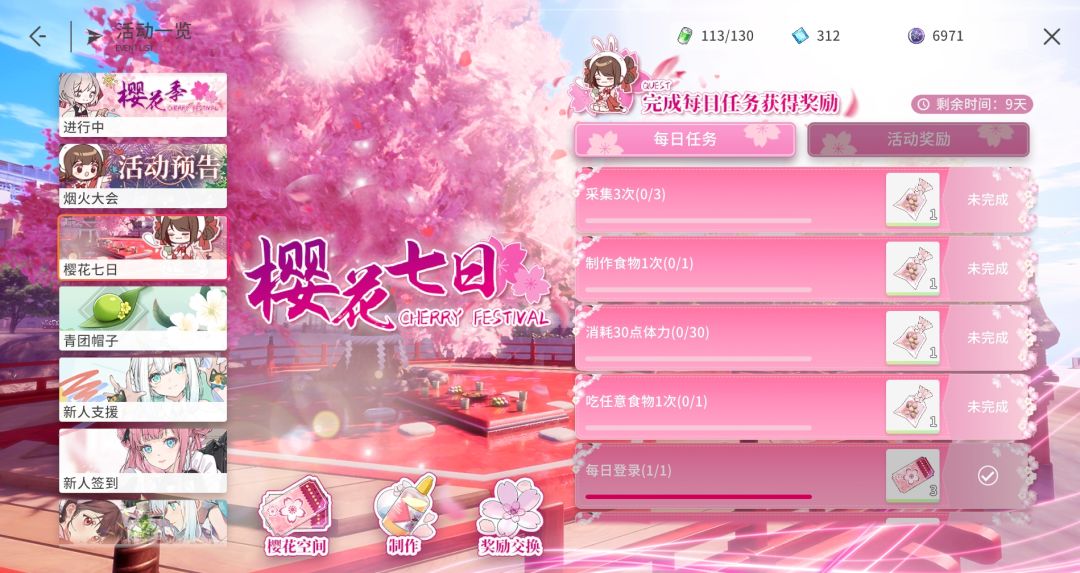 点击樱花七日可以看到日常任务界面