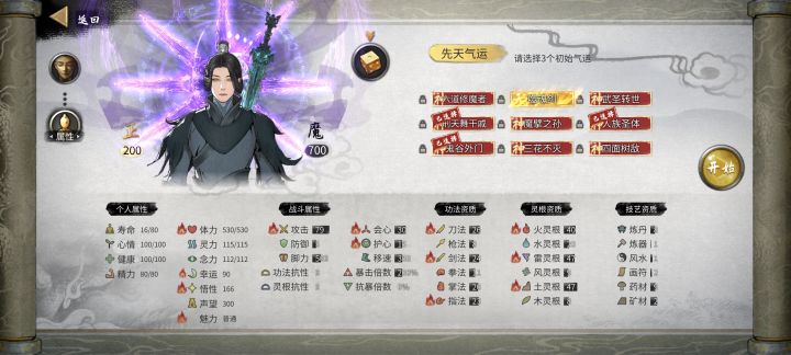 方法二:既然因为不能选三个先天开不了游戏,那你开始摇骰子的时候提前把三个先天选了,不就行了,手贱取消了,就方法一