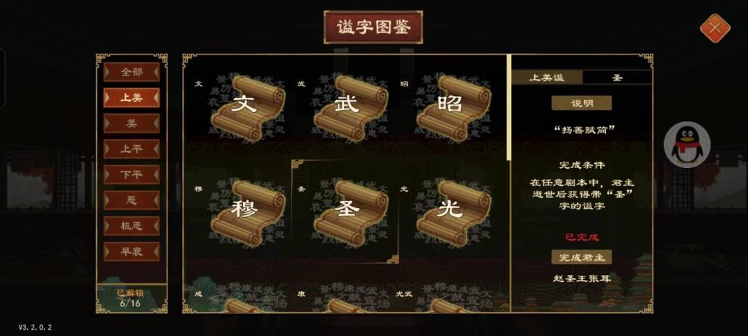 ③游戏内历史人物(历史上无明确谥号的)三年内去世依据性格(心性)予以谥号。