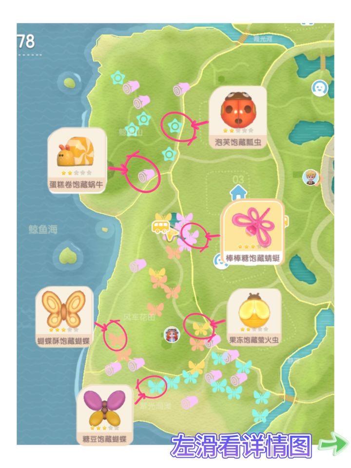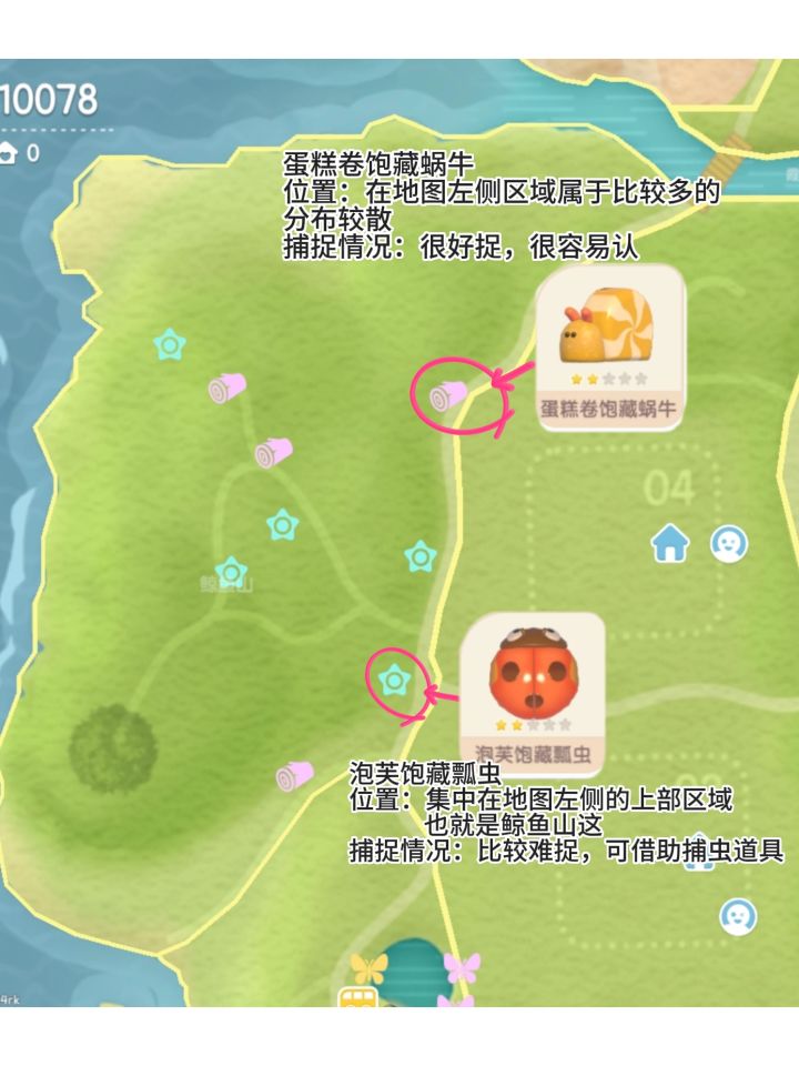 🥳超全点位来啦,大概捉了2小时,期间用了几次捕虫道具,☺“全知强化剂”挺好用,尤其在晚上捕虫的时候。
