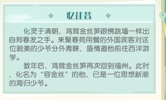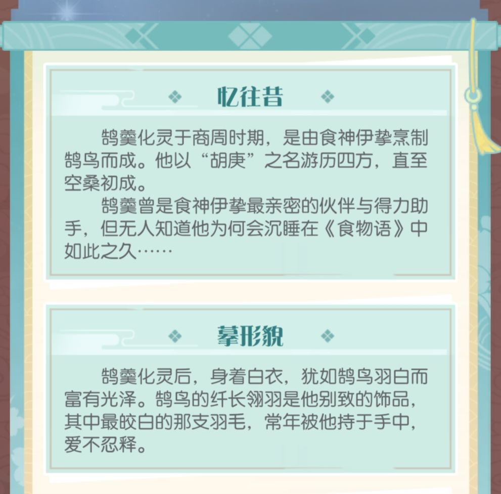 角色故事:透露出雉羹的存在,依稀记得主线当时还没有出到这里,还解释了鹄羹沉睡的原因