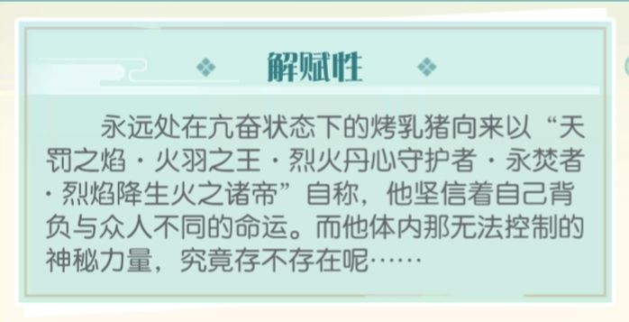 在远古时期,华夏的先祖就和猪猪结识。猪猪为了心中的道义,也是为了燧人氏这个朋友愿意承受千年万年的孤独。人类之所以伟大,在于人的不满足,人不满足于现状于是向天参拜,向天发问,向天索取;人不满足于现状,于是承受代价,承受孤独,承受罪孽。