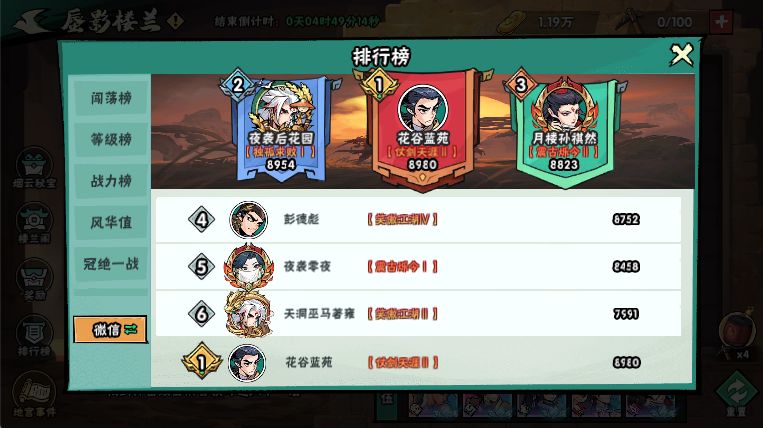 楼兰,通关很容易,我比较喜欢的活动,在这里你可以跟大佬们拼一下排名,前提是要舍得2150玉重置满。