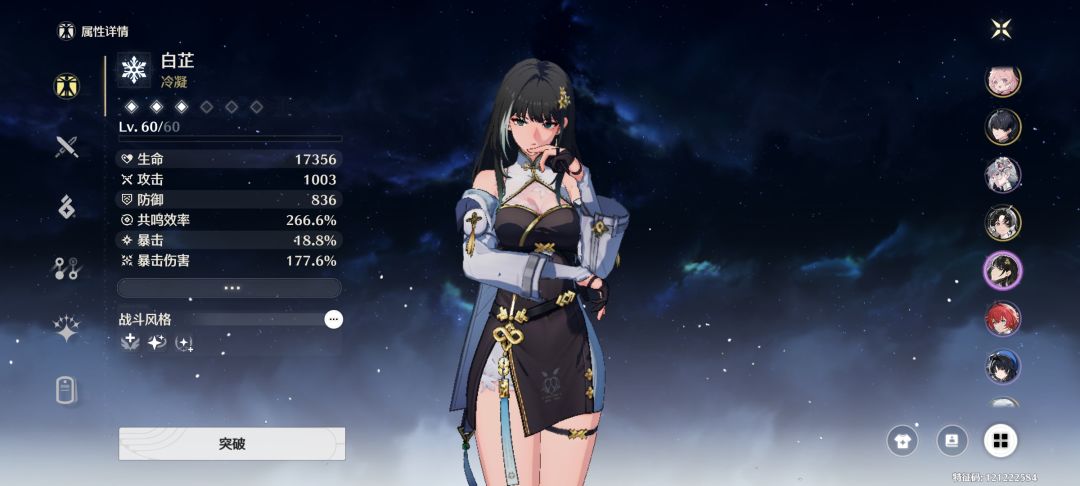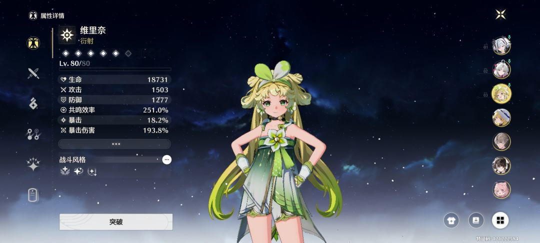 (这里你暴伤就算270或260也能打,但一定要保证暴击率和共鸣效率)