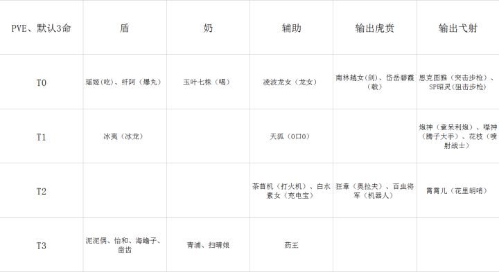T0、T1是主力,T2有余裕再拉技能和装备,T3纯过渡用不要投入技能和装备,不在榜的不用碰,你游关卡难度太高,资源太少,不精打细算100%退游。