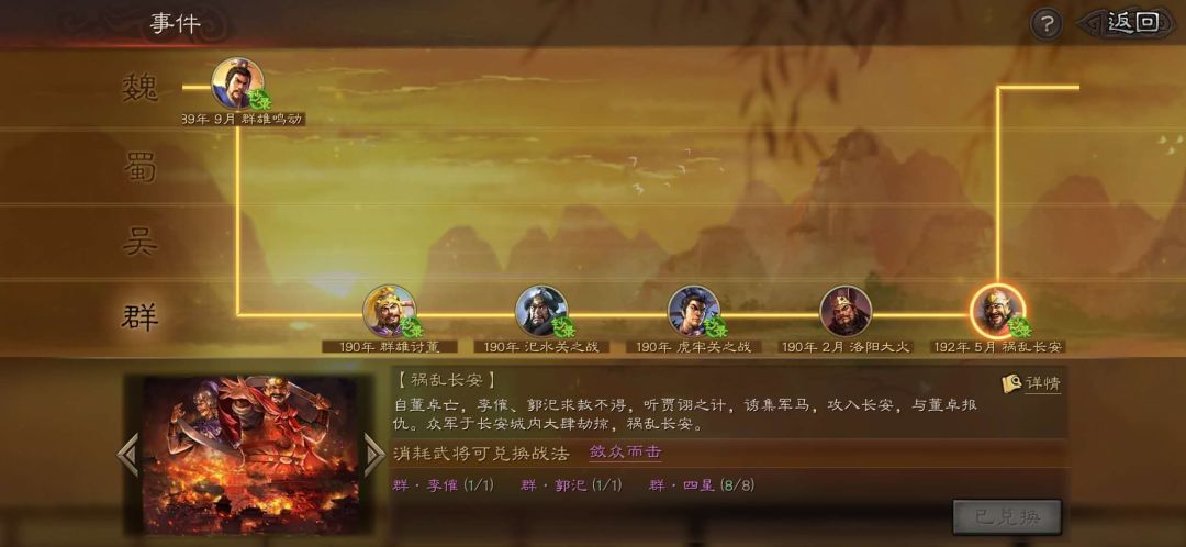 敛众而击是PK赛季中的事件战法,由郭汜,李傕加八个群阵营紫将换取。