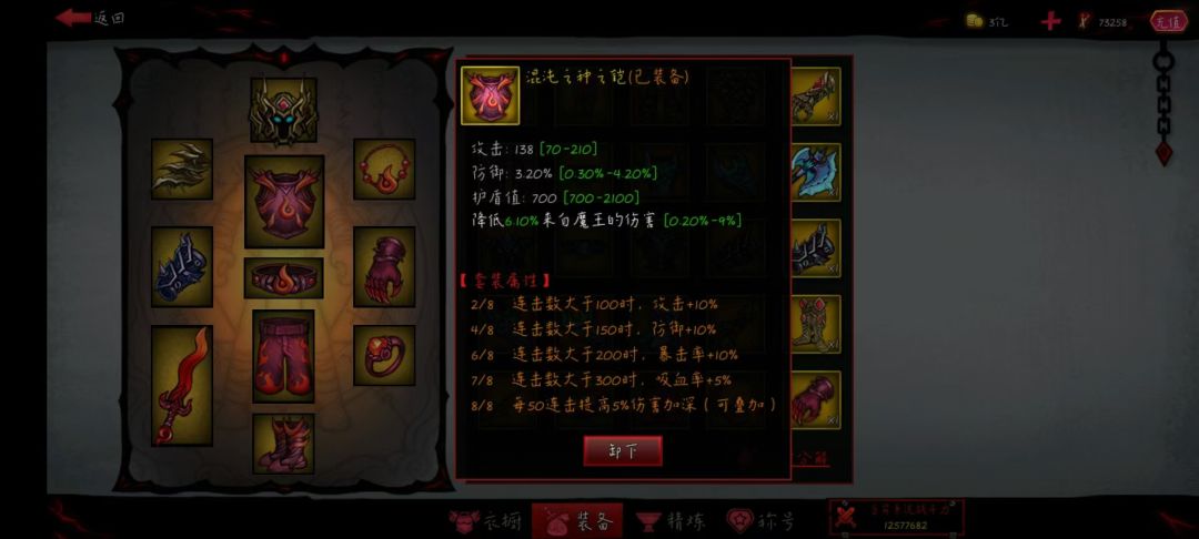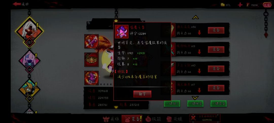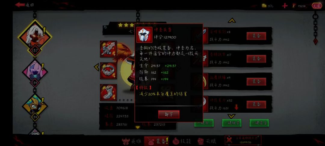 英雄装备:一星噬魔头10%+三星深渊裤子15%+七星神圣头20%=45%