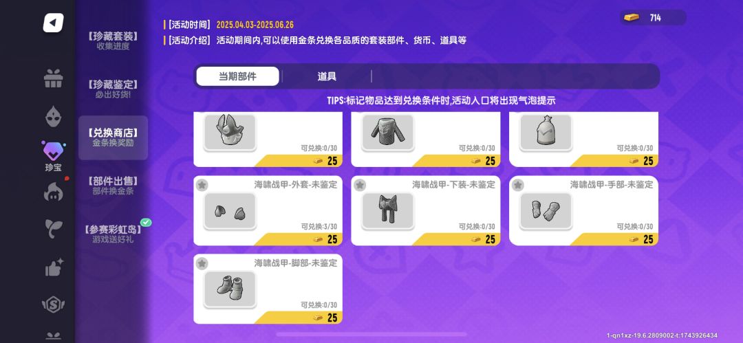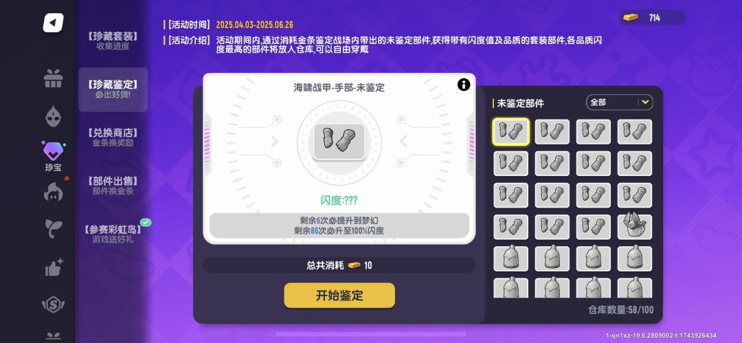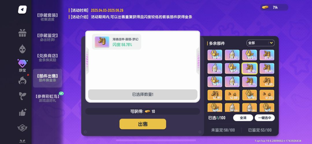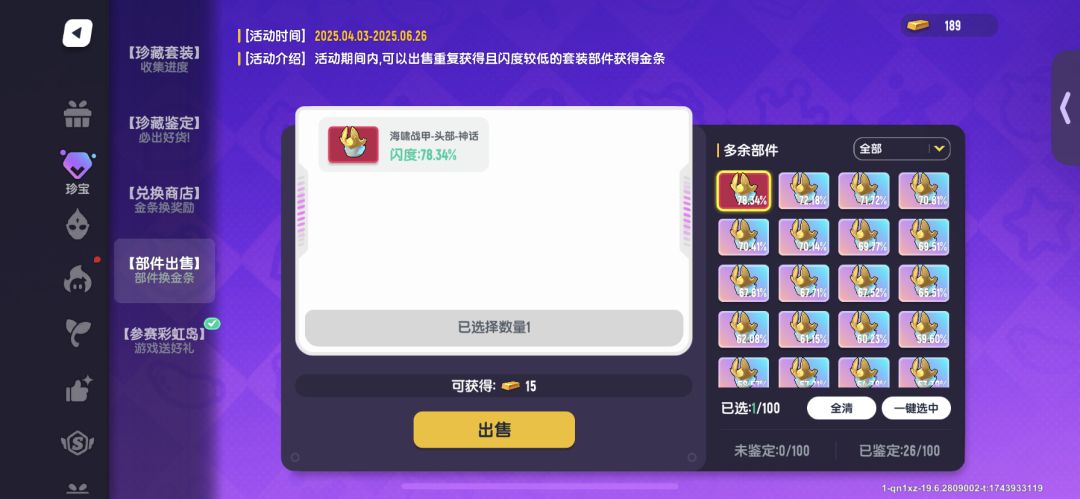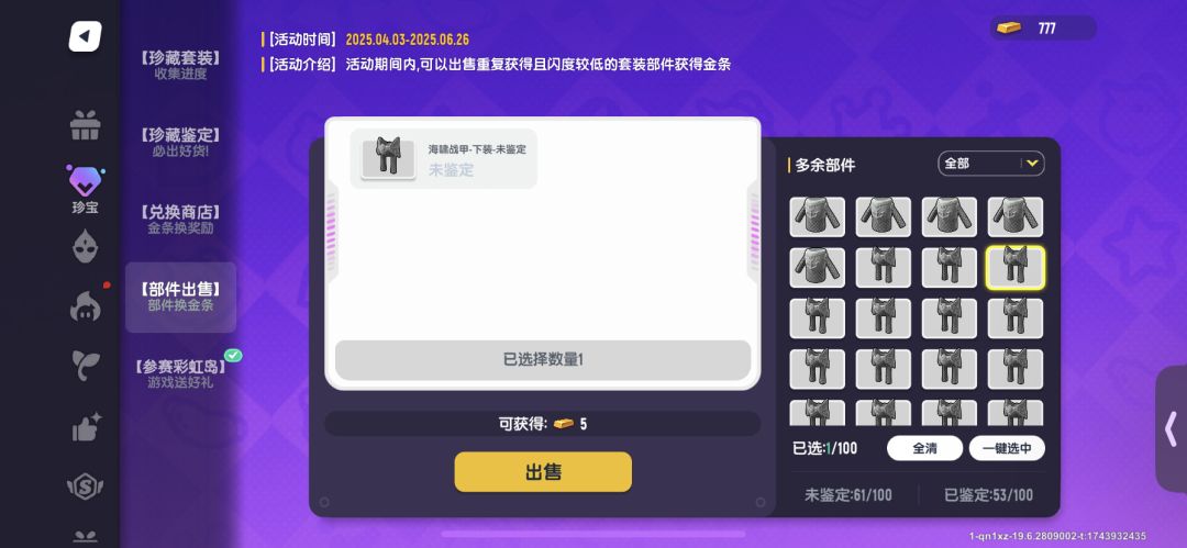 另外闪度低于之前鉴定品质闪度,则会放入“多余部件”列表,可以通过出售,获取金条