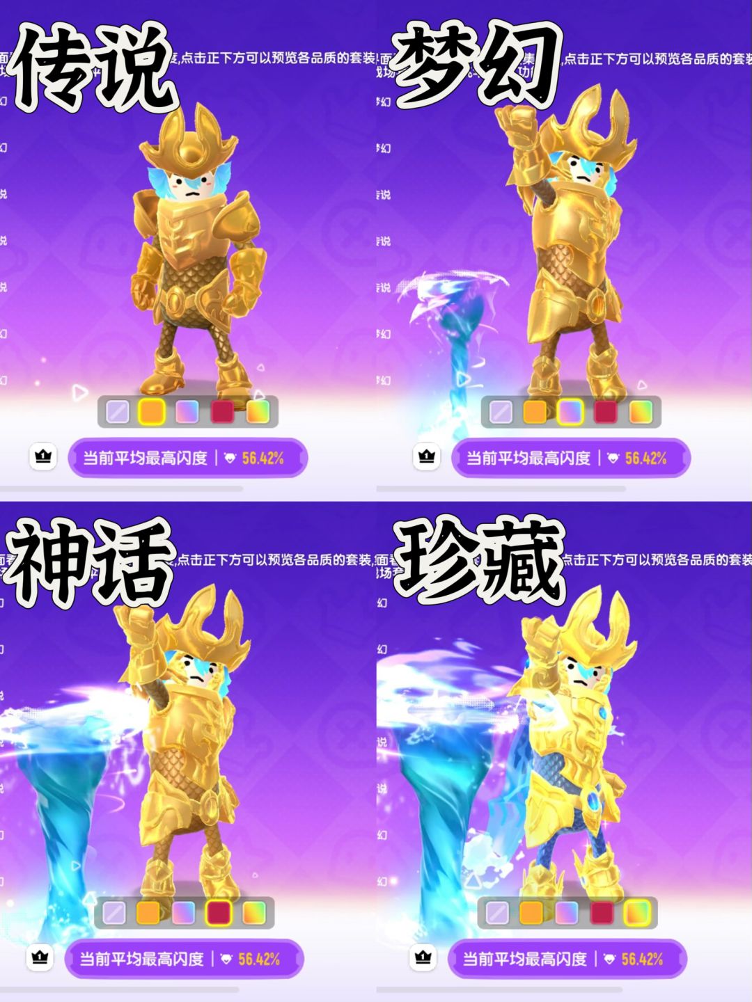可以发现品质越高,套装越闪亮所以海啸战甲分为五个等级第一级,未鉴定;第二级,传说;第三级,神话;第四级,珍藏。