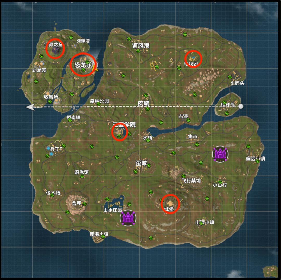 - 跳伞:在选择跳伞地点时,我建议优先考虑那些楼房较少或宝箱怪密集的区域,例如跳城堡、马戏团、三国学院、恐龙乐园以及宝藏龙窟等。(尤其是宝藏龙窟,千万别小看它——里面通常藏有五六个宝箱怪,清理完毕后,基本可以实现金光满配外加3级套装的豪华配置。)不过,需要提醒的是,我们的核心目标是快速发育,因此不必过于贪恋物资。一般来说,在这些地方花费1到2分钟,凑齐一套还算不错的装备即可,随后便可迅速转移,投入到摸金中来。