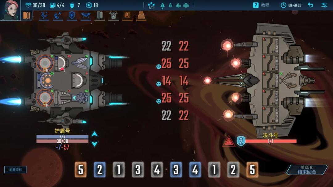 在战斗中敌方会预先显示自己的进攻数值,己方需要用手牌对飞船进行部署,将1-9的数字能量装载进飞船的部件中。