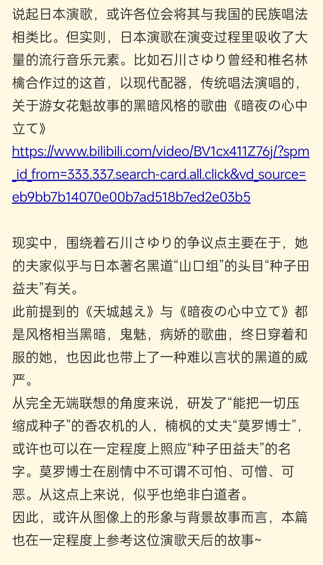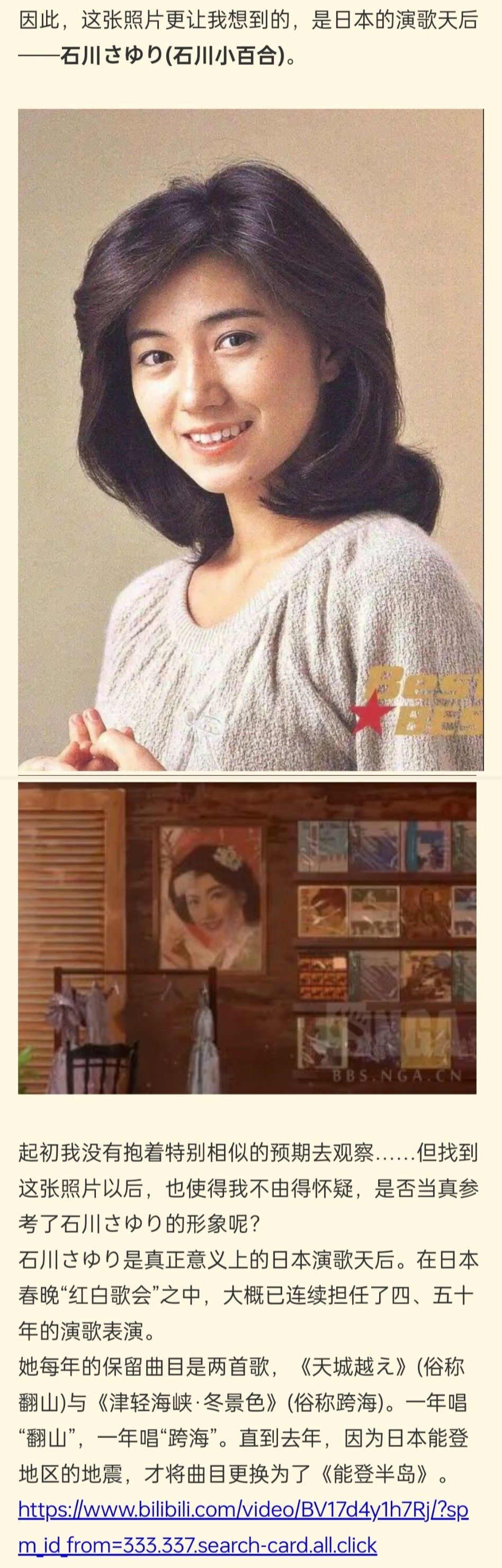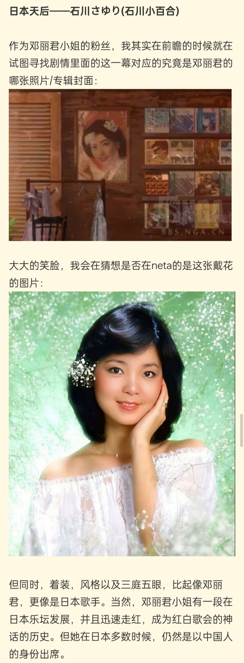 分享一下NGA大佬写的楠乔妈妈现实原型杂谈,邓丽君 石川小百合等数个天后的集合体。