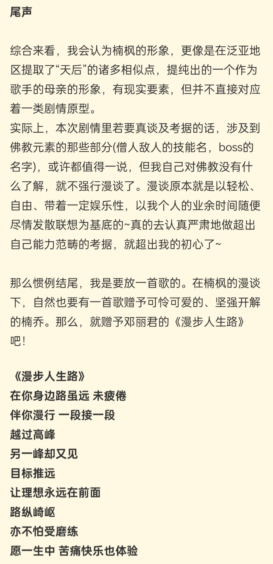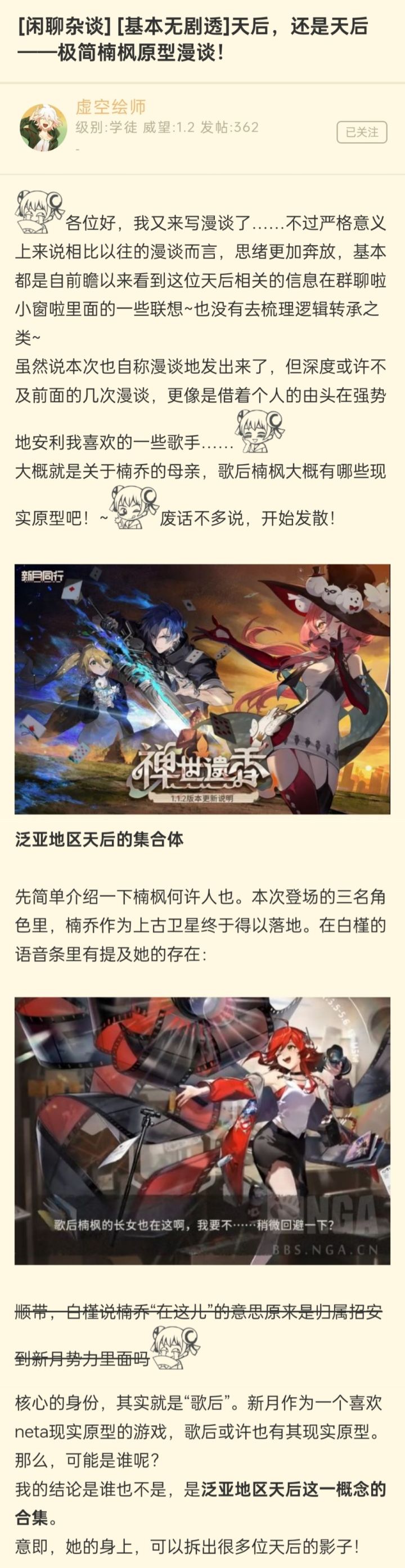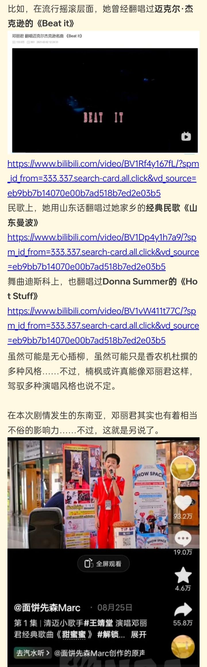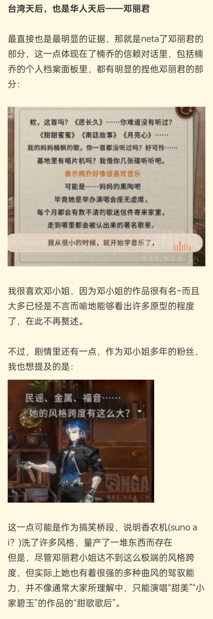 分享一下NGA大佬写的楠乔妈妈现实原型杂谈,邓丽君 石川小百合等数个天后的集合体。