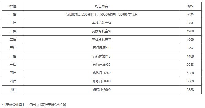 活动一:活动期间将限时上架节日礼包,礼包内容如下: