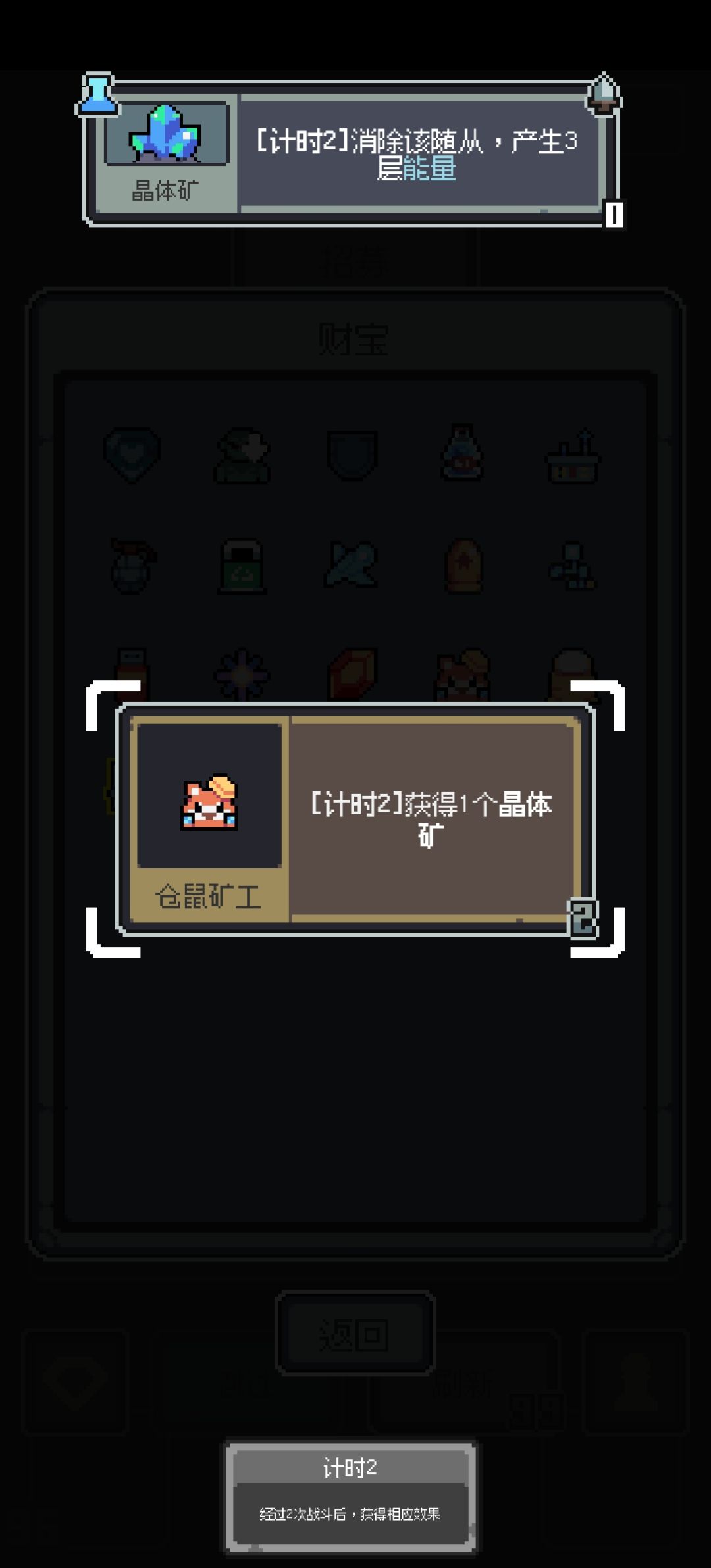 中期可以开始扔掉前期抓的晶体矿/矿工/矿工35%概率重复一次/晶体矿+3能量的宝物,并将能量获取方式变为晶体炉了,有抓到的话可以拿一个仓鼠矿工(2计时给一个晶体矿)宝物,减少卡组厚度防止上场的核心怪太少,同时也保留能量获取速度