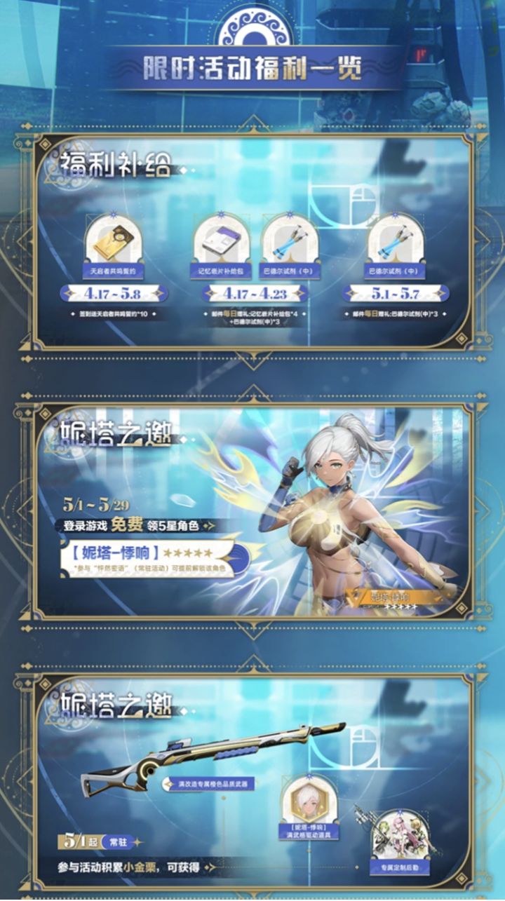 什么还有高手,尘白禁区2.7版本福利再度升级,除去与往常版本一样的限定池十连福利和记忆补给体力资源外,可以通过活动获取新五星专武角色妮塔悸响的满天启和武器满改,直接全养成内容毕业。