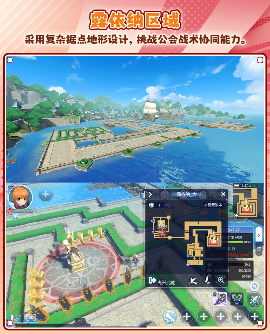 据点模式战场地图将调整为「公会约战」专属战场,供冒险者们自由体验,常规公会战中将不再开放该地图玩法。