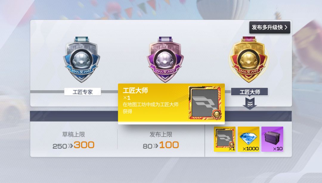 同时发布作品数累计到一定数量还能获得专属头像框和钻石奖励,每周官方都会统计优秀作品并给对应创作者发放钻石奖励,地图游玩人数越多,奖励越丰厚哦~