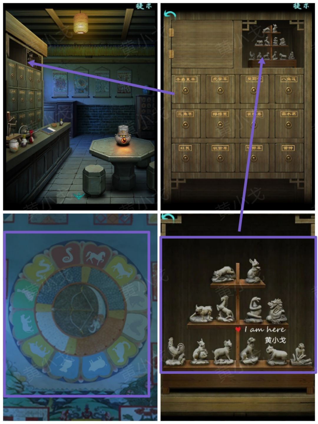 33.点击药柜上的十二生肖机关;根据十二生肖图上的线索,把生肖放到正确的位置上