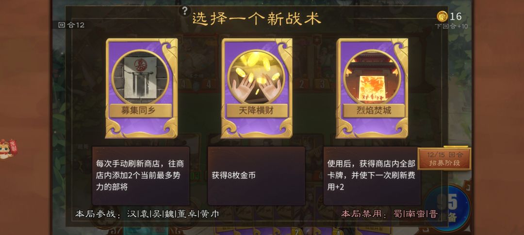利用12回合的募集同乡战术加卢植上阵效果翻倍。