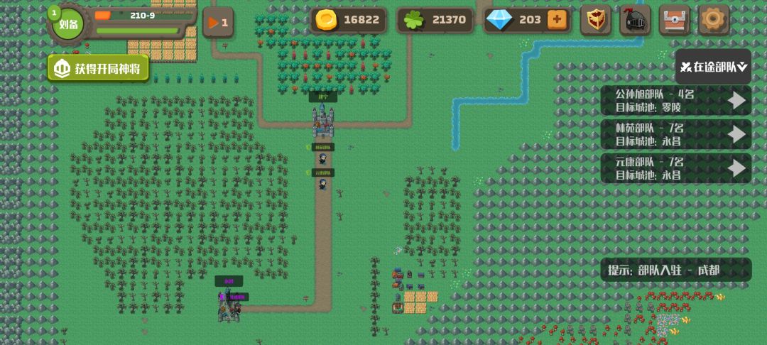 开局第一步,三人卸下所有兵力,等待许昌跟襄阳同时出兵新野,然后补满兵力出征襄阳,跟刘表队伍对接直接撤退,撤退方向选择襄阳。