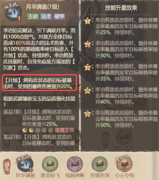 技能1&技能4:提高暴击伤害,特别适合显儿、秀宁、李白这类依赖暴击的主C