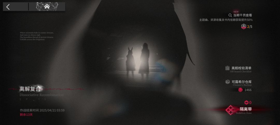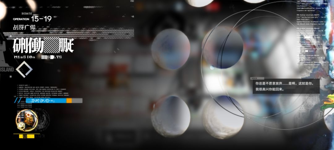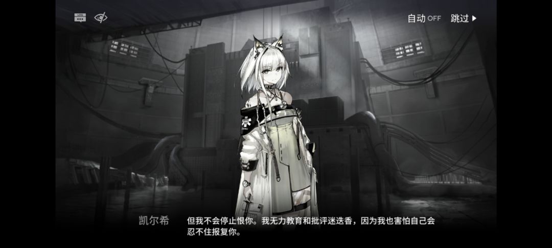 这次地图也得好好夸一下,真的细节满满啊!开始的时候下面会有话语,后面直接和普瑞赛斯直面对话,而且在打完关后,首页后面就变成凯尔希的背影了