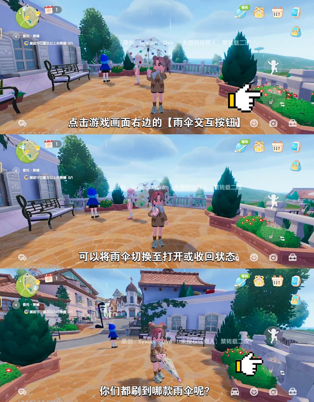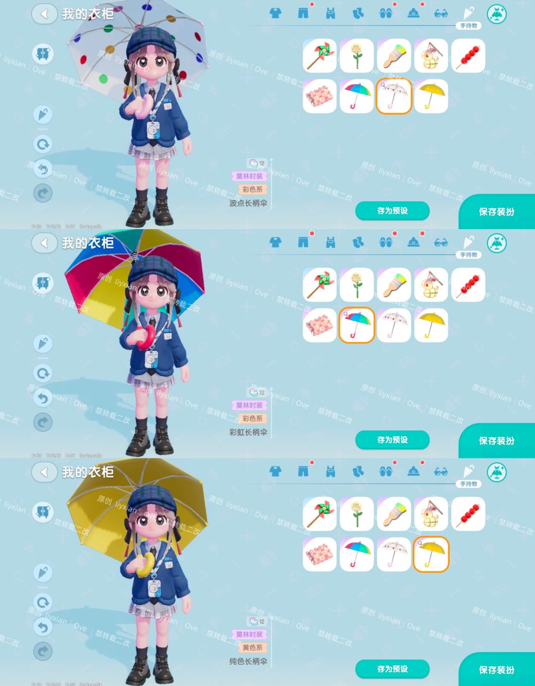 我目前已经刷到其中3款啦,就差绿色的碎花长柄伞了。