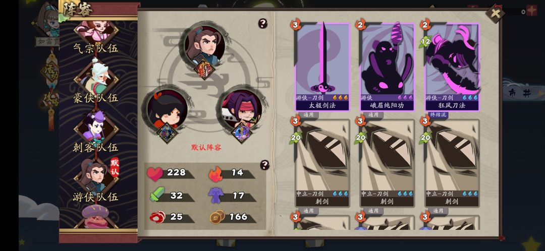 历练:还是气爆的最最稳,基本0翻车,毒宗前期有些难顶,也经常翻车游侠真心不爱玩射箭🏹,前段时间抽到太极剑客,借鉴了一下大佬们的高配融剑流,感觉还是带这紫化田伯光平民玩法会稳点豪侠有七公帮主峨眉之后通关无压力,自残也可以通,但经常有时看别的地方给自己整没了,自残很少玩