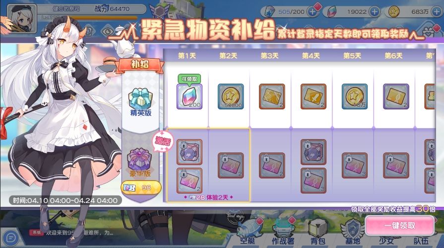 亲爱的指挥官,登录补给活动即将来临,活动期间累计登录即可领取相应奖励,激活豪华补给更可额外获取稀有道具奖励~
