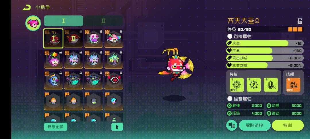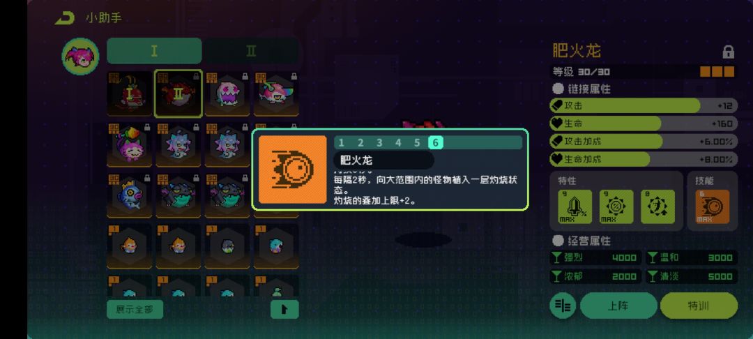 推荐携带肥火龙(增加灼烧层数)和齐天大圣(增加暴击率和攻速,这角色暴击率太低了,攻速加快充能器充能)