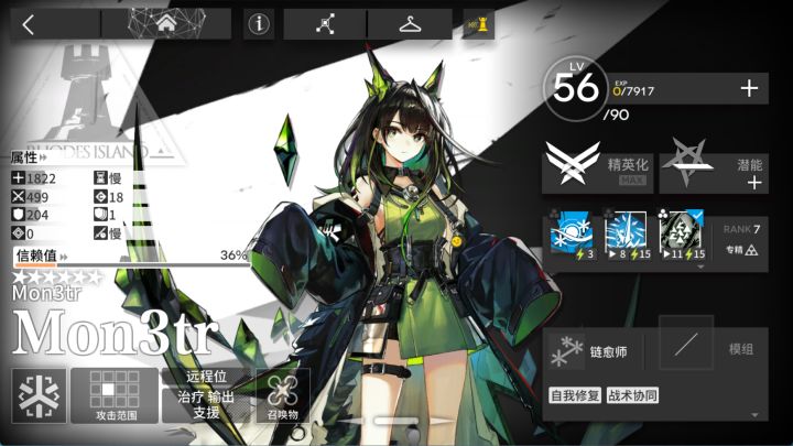 ①日常作为奶辅 M提供的攻速往往会被愚蠢的博士们浪费。即便拿去拐吃攻速的双御械,也非常考验费用和位置,我个人更倾向代替澄闪,跟拉、余对轴。很多博士不懂对轴,但更可怕的是:mon3tr的奶在博士们手中可能弹不到满血拉狗——你需要按“中近远”的顺序部署需要被拐的干员。听不懂的话建议带一技能,有更高的概率奶到拉狗。