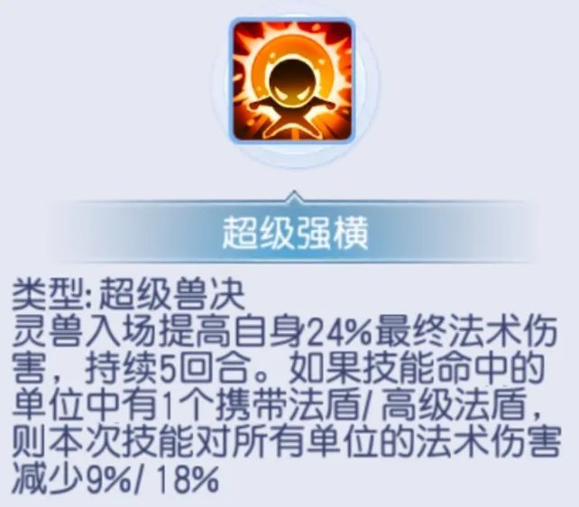 这套技能以输出为核心,尤其是超级强横,能够大幅增强宠物的伤害输出。虽然这套技能在竞技比武中表现一般,但在日常挂机中非常实用,效果显著。