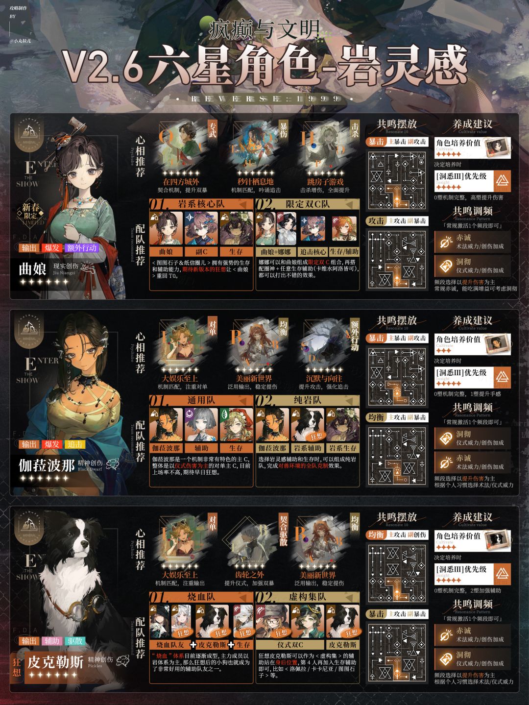 2.根据新角色的加入,大量调整了相关配队示例和文字描述。