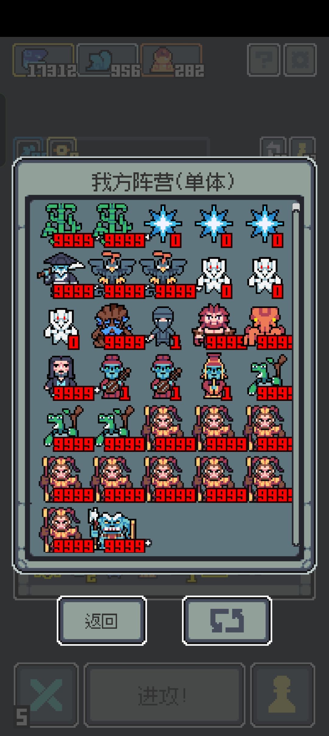 原来这个游戏攻击有上限!通过“宝船+方天画戟”,大圣最多叠攻击到18亿,其他的有的上限是20亿,有的是16亿,一旦超出这个数就不加了,如果用方天画戟强行吸收攻击叠几百亿的话会直接清0,这个bug阻挡了我叠好几万亿的伤害,70多层的时候已经能破百亿攻击了。指数级伤害增加,如果没有这个bug到99层突破几亿亿也是可以的。希望尽快修复😡