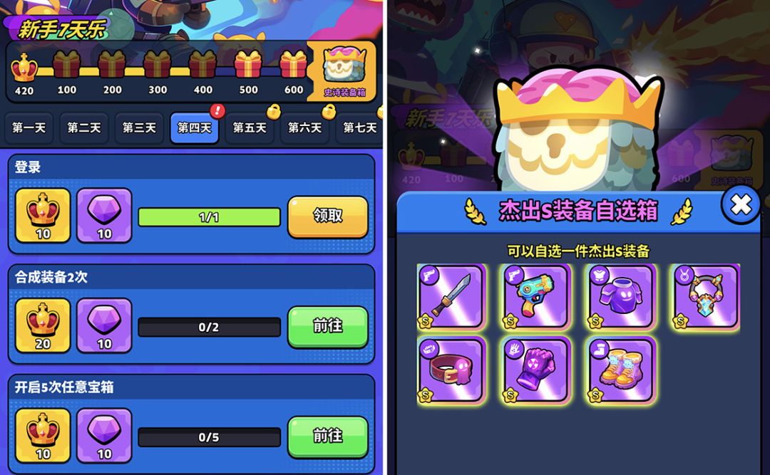 新手7天乐的任务能完成尽量全完成可以获得杰出S自选装备