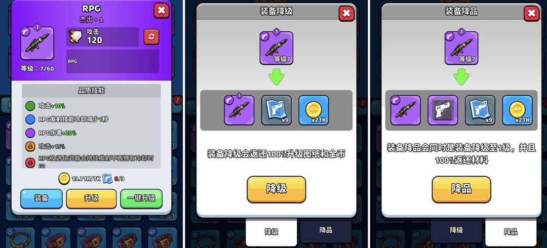 1、等级、品阶有就升都是可以无损降级的;