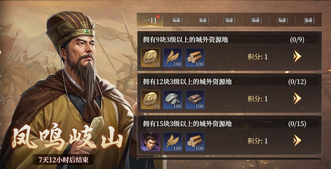每日解锁一定数量任务,完成任务可获得积分与任务奖励,积分数量累计至一定值可购买兑换豪华资源奖励~
