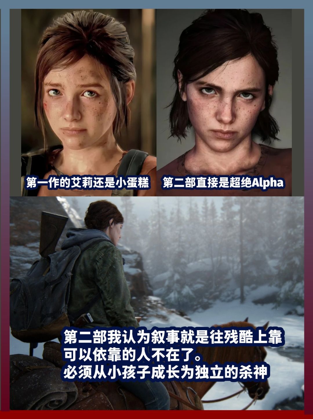 虽然剧情让人一言难尽……但是很多玩家在没有体验过的前提下,真的很容易被铺天盖地的评论影响。我想说第二部带给我的震撼不亚于第一部,如果第一部是末世温情的糖果,第二部更像是一场美梦清醒之后的无奈。也许制作团队就想让玩家感受这种暴击吧……