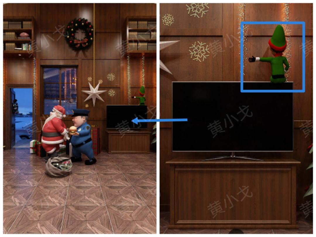 12.点击墙上的开关,打开,观察圣诞树彩灯闪烁的顺序