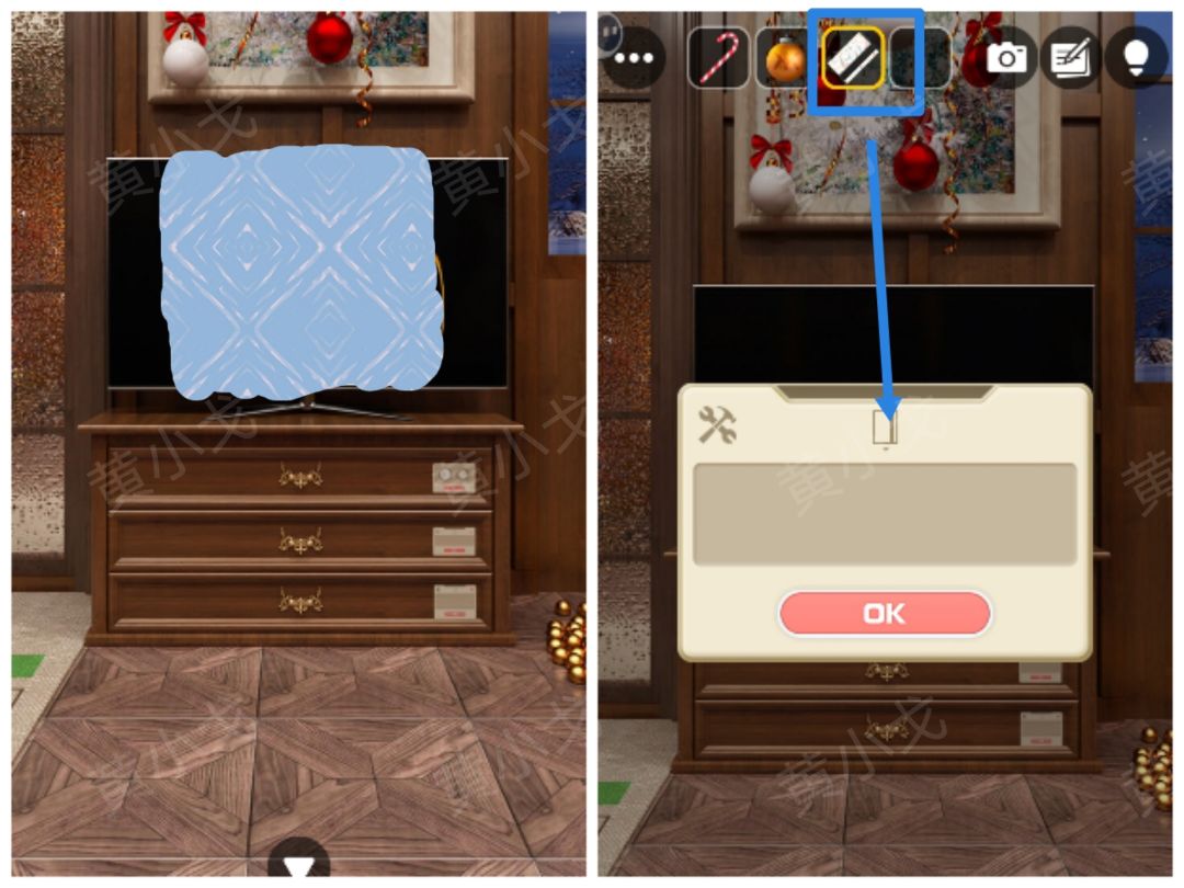 28.点击电视柜的第二个抽屉,根据上面的图案提示,刷【卡片】