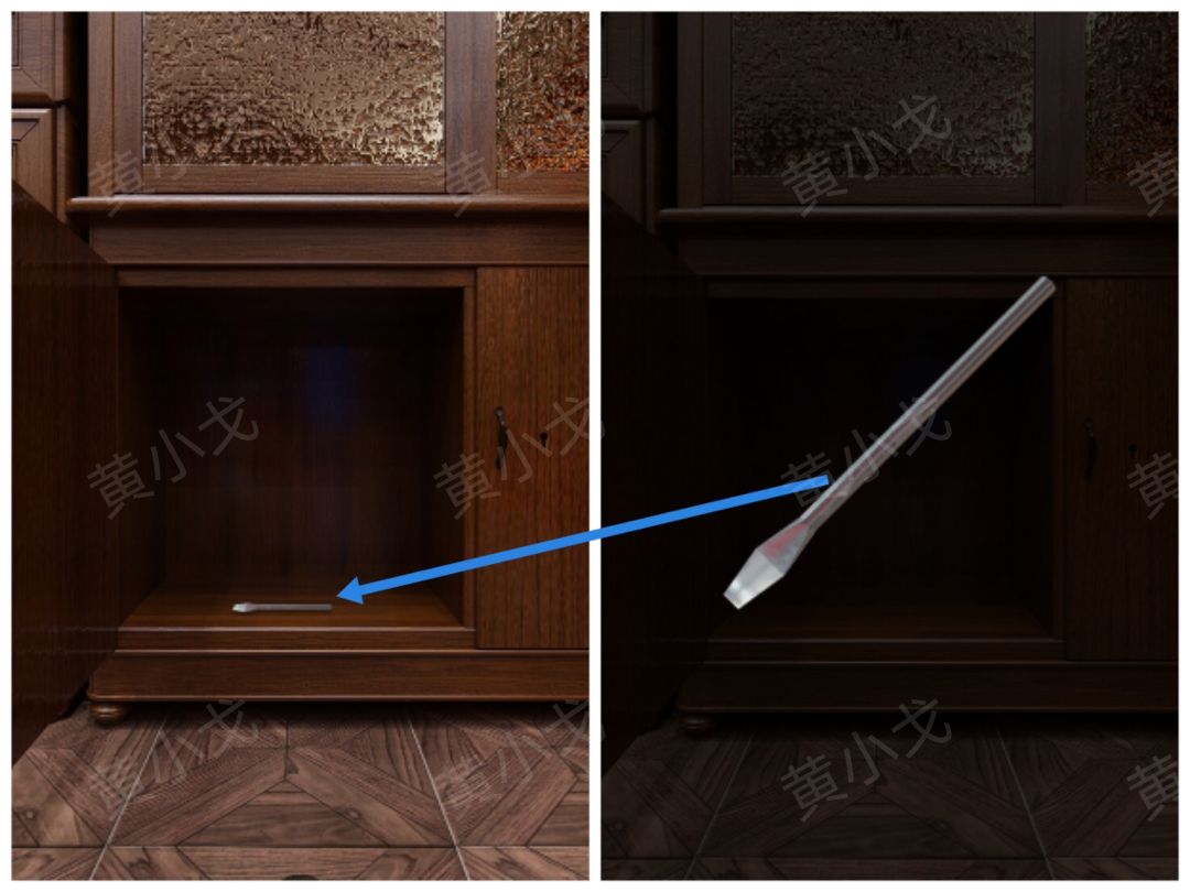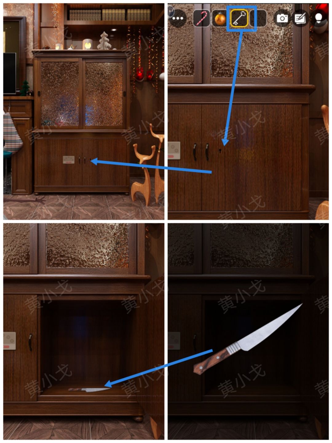 24.点击玻璃柜下层右侧柜门上的锁,用【钥匙】打开;获得【匕首】