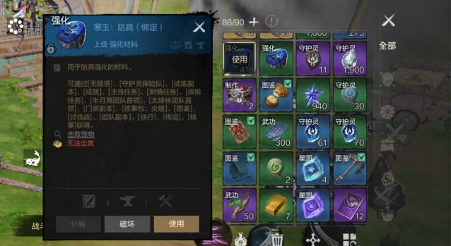 材料获取: 试炼本是主要的稳定来源,分解装备&饰品&贵重品也能获取!
