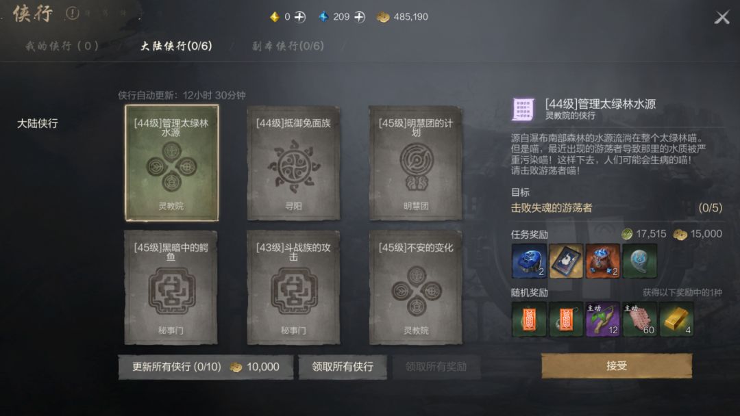 ● 每日的侠行任务是获取抽奖券、绑定神石、探险石(用于守护灵派遣的材料)以及各类强化材料的重要途径,请务必全部完成。
