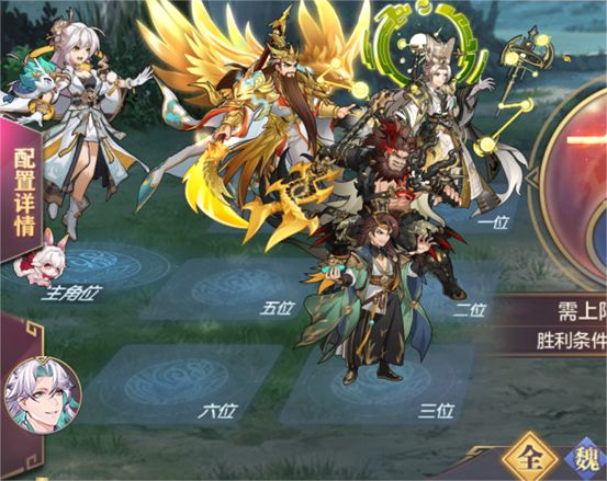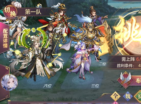 第一队:曹操(专武+五红)+磐极曹仁(曹植羁绊)+蔡文姬(专武+五红)+凛煜刘备(赵云羁绊)+法正(专武+五红)+弈辰诸葛亮(姜维羁绊)