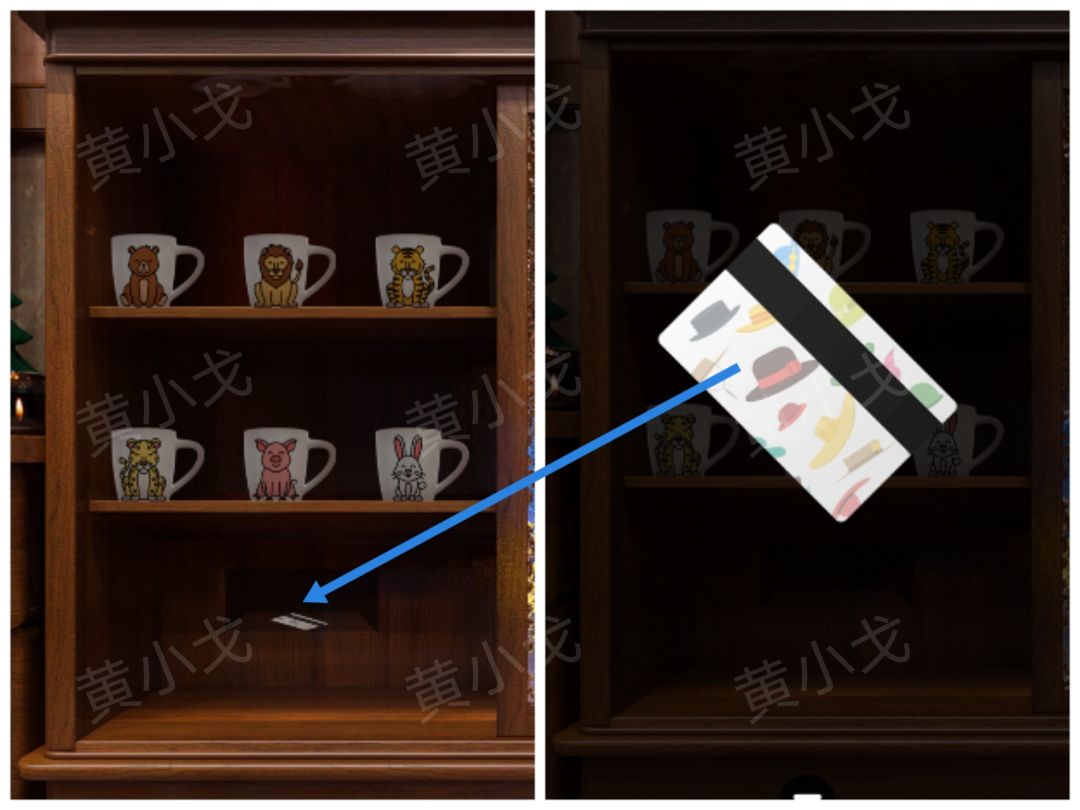 11.点击电视柜的第三个抽屉,根据上面的图案提示,刷【卡片】